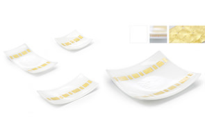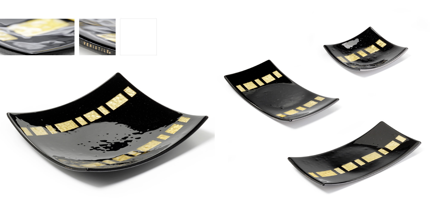 In this Collection VENISTILE wanted to enclose a fine collection of Murano glass trays embellished with applications in 24-carat gold leaf and silver leaf, as well as a range of artistic sculptures delicately lit by the effect of internal reflection of the strip LEDs to create landscapes into a new light.
